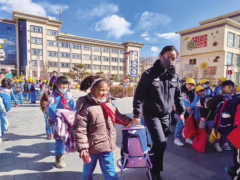 站在學(xué)校門口,等待孩子的家長(zhǎng)央金感觸頗深,她告訴記者,每次開學(xué)前、開學(xué)時(shí)、開學(xué)后,都能看到民警們忙碌的身影。為學(xué)校家長(zhǎng)提供幫助,為學(xué)生消除安全隱患,營(yíng)造了安全、和諧、文明的校園環(huán)境,十分感謝他們。“今天報(bào)到啦,我們看到警察叔叔和阿姨就覺得很安心、很開心?!睂?shí)驗(yàn)小學(xué)3年級(jí)10班學(xué)生白瑪娜薩說。