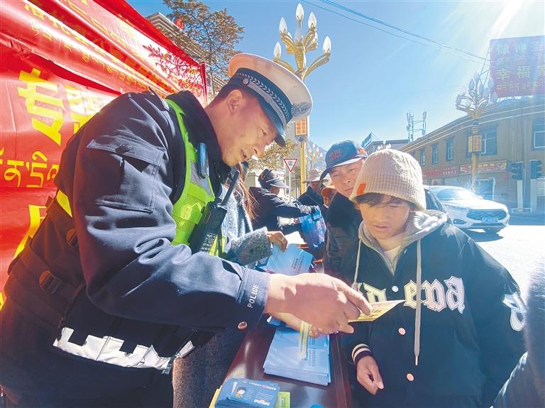 圖為工作人員向過往群眾發(fā)放宣傳手冊并講解網絡安全知識。記者 丹增平措 攝