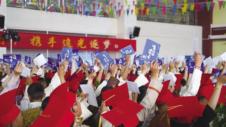 5月29日下午,拉薩市第四高級中學舉行2024屆高三年級成人禮暨畢業(yè)典禮。750余名學生身著盛裝,頭戴紅色成人禮帽,與老師、家長共赴這場華麗璀璨的青春盛宴。