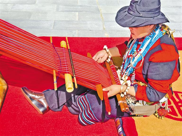 在林芝市非遺活動(dòng)現(xiàn)場,群眾展示珞巴織布。記者 謝筱純 攝