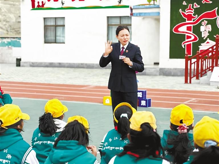 日前,曲松縣人民檢察院的檢察官在下落國家濕地公園舉行“法治小課堂”,為學(xué)生沉浸式講授濕地保護(hù)領(lǐng)域公益訴訟典型案件及政策法規(guī)。記者 丹增平措 攝