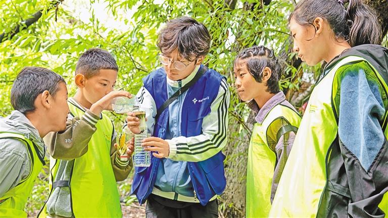 拉薩市未成年人救助保護中心社工幫助孩子們收集標本。