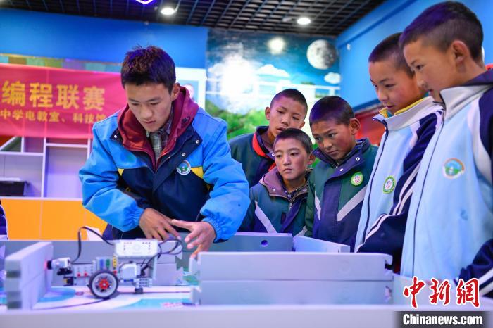 10月25日,在西藏自治區(qū)那曲市聶榮縣中學(xué),學(xué)生展示計(jì)算機(jī)編程作品。中新社記者 貢嘎來松 攝