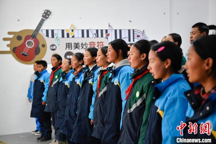 10月25日,在西藏自治區(qū)那曲市聶榮縣中學(xué),學(xué)生在老師的帶領(lǐng)下學(xué)習(xí)合唱。中新社記者 貢嘎來松 攝