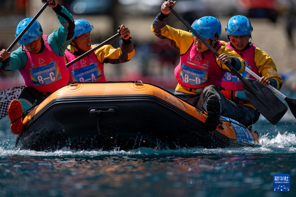 當(dāng)日,2024年巴松措國際漂流公開賽在西藏林芝市工布江達(dá)縣開賽。30余支隊(duì)伍在巴松措的湖面上展開角逐,完成兩人漂流艇競速賽和四人漂流艇排位賽的比拼。