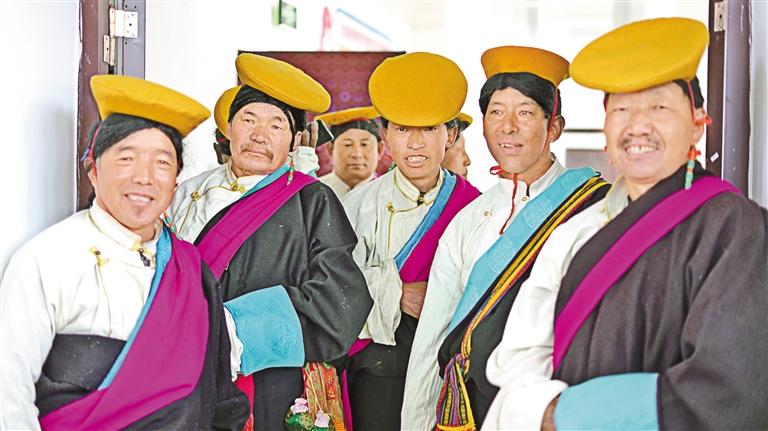 甲瑪鄉(xiāng)諧欽隊(duì)演職人員做演出前準(zhǔn)備。