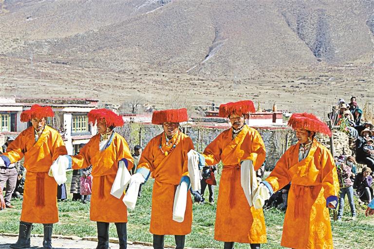 甲瑪鄉(xiāng)諧欽隊(duì)在墨竹工卡縣甲瑪松贊文化藝術(shù)節(jié)上表演諧欽。