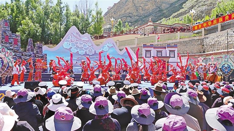 本次洛扎縣庫(kù)拉崗日文化旅游節(jié)的開(kāi)幕式文藝演出以《春之韻》《夏之夢(mèng)》《秋之歌》《冬之舞》4個(gè)篇章,通過(guò)歌曲、舞蹈、情景劇、歌伴舞等群眾喜聞樂(lè)見(jiàn)的藝術(shù)形式,為當(dāng)?shù)厝罕娕c外來(lái)游客獻(xiàn)上了文化旅游“大餐”,生動(dòng)展示了洛扎人民在穩(wěn)定、發(fā)展、生態(tài)、強(qiáng)邊“四件大事”落實(shí)方面的付出與成就。