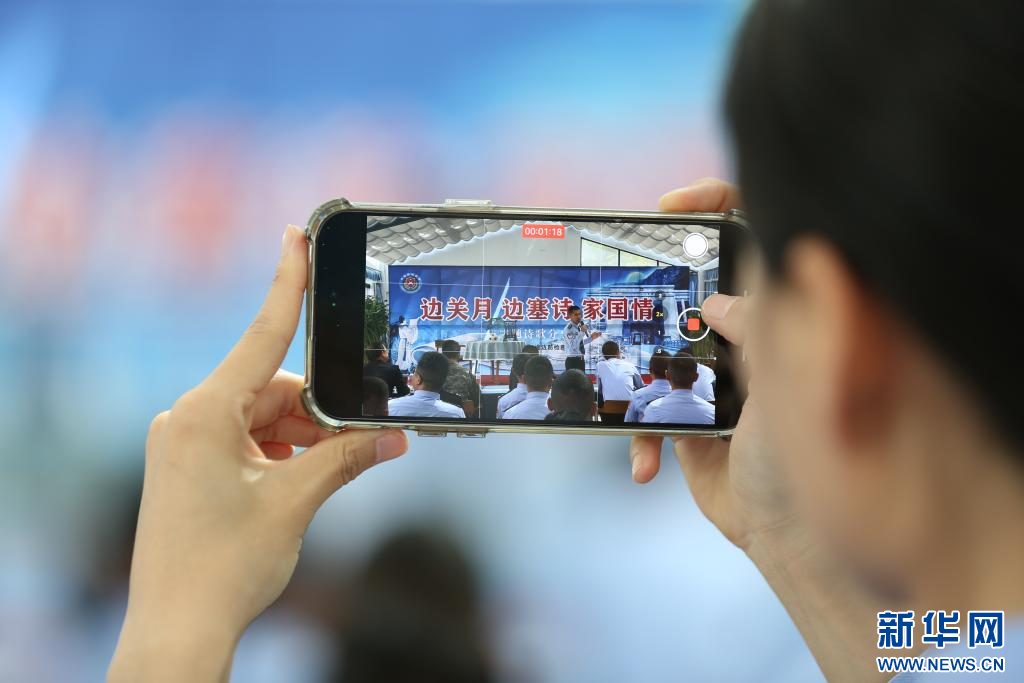 觀看詩歌分享會的民警用手機錄制精彩瞬間(9月11日攝)。新華社發(fā)(肖富貴 攝)