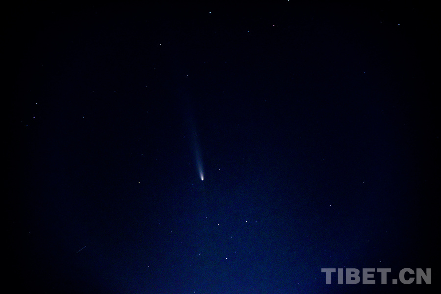 中國(guó)西藏網(wǎng)訊 近日,一顆6萬年一遇的名為紫金山-阿特拉斯的彗星(C/2023 A3 Tsuchinshan-ATLAS,以下簡(jiǎn)稱“紫金山彗星”)“光臨”地球,吸引了眾多星空愛好者觀測(cè)。10月16日晚,記者在西藏自治區(qū)拉薩市柳梧大橋上有幸用相機(jī)記錄下這一時(shí)刻。