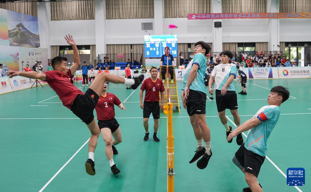 23日,第十二屆全國(guó)少數(shù)民族傳統(tǒng)體育運(yùn)動(dòng)會(huì)(以下簡(jiǎn)稱“運(yùn)動(dòng)會(huì)”)毽球項(xiàng)目在海南三亞中瑞酒店管理職業(yè)學(xué)院開(kāi)賽,斗志昂揚(yáng)的西藏隊(duì)與沉穩(wěn)老練的香港隊(duì)在男子三人小組賽中相遇。頭球、倒鉤球、掃堂腿、腳底扣球絕殺……雙方你追我趕,觀眾看得目不轉(zhuǎn)睛。