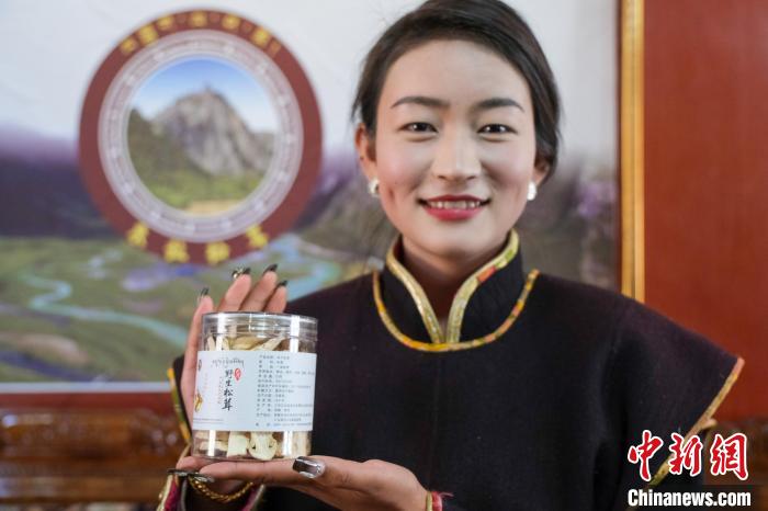 圖為12月12日,朱拉松茸加工農(nóng)民專業(yè)合作社職工白瑪康珠展示合作社的松茸產(chǎn)品。記者 江飛波 攝