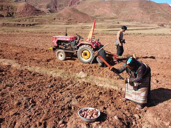 在充分調(diào)研的基礎(chǔ)上,嘎瑪澤加從本村實(shí)際出發(fā),積極爭(zhēng)取項(xiàng)目、資金支持,于2014年起牽頭在全村推廣紅土豆和藍(lán)青稞特色產(chǎn)業(yè)種植工作。經(jīng)過(guò)不斷努力,成功將覺恩村紅土豆種植面積擴(kuò)大到1200畝、藍(lán)青稞1000畝,這兩項(xiàng)種植業(yè)每年為群眾創(chuàng)收430萬(wàn)元,使群眾看到了發(fā)展特色種植產(chǎn)業(yè)帶來(lái)的實(shí)實(shí)在在的經(jīng)濟(jì)效益。