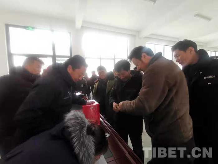 經(jīng)過四天的路途,1月1日,載著從昌都遠道而來的群眾和行李的大巴車及卡車緩緩駛入山南市加查縣易地扶貧搬遷安置點,這標志著昌都市三巖片區(qū)跨市易地扶貧搬遷群眾順利入住新家,一場跨越千余公里的遠行隨之結束。當?shù)叵嚓P部門負責人為每一名搬遷群眾送上潔白的哈達,祝賀他們順利入住,32戶240名群眾將在這里開啟幸福新生活。