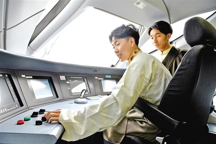 來自山西大學(xué)附屬中學(xué)西藏班的學(xué)生們?cè)诜掂l(xiāng)前,走進(jìn)太原動(dòng)車所探秘高鐵。圖為學(xué)生在動(dòng)車機(jī)械師的引導(dǎo)下,體驗(yàn)高鐵技術(shù)。張晉彤 記者 丹增平措 攝