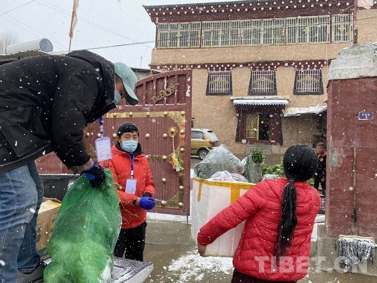 圖為理塘團(tuán)縣委“青年突擊隊”風(fēng)雪中免費跑腿為抗疫“宅家”群眾送物資上門