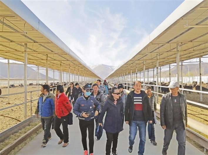 在西藏泰成乳業(yè)有限公司牛羊育肥基地觀摩學(xué)習(xí)。記者 王菲 攝