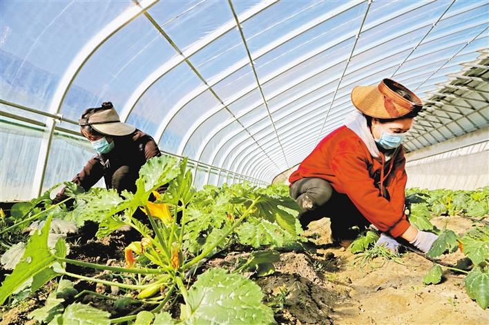 圖為瓊結(jié)縣唐布齊村村民央金(左)和巴桑在基地的大棚內(nèi)工作。倫珠澤仁 記者 次旺 攝