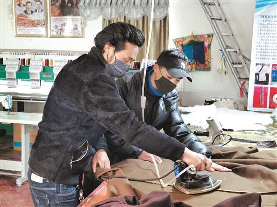 圖為在當(dāng)雄縣烏瑪塘鄉(xiāng)布珠農(nóng)牧民民族服裝專業(yè)合作社,創(chuàng)辦人布珠正在教授員工熨燙布料技巧。 拉薩融媒記者 范江英攝