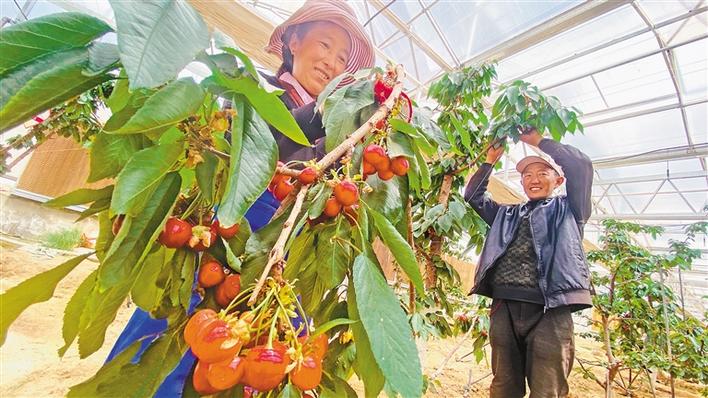 一條條有機(jī)基質(zhì)槽均勻分布,一座座日光溫室拔地而起。走進(jìn)位于尼木鄉(xiāng)聶玉烏米組的車?yán)遄又悄軠厥掖笈?,已是碩果累累,一片片層層疊疊的翠綠中,一個(gè)個(gè)晶瑩透紅的果子密密匝匝地掛滿枝頭,引得人垂涎欲滴,遠(yuǎn)遠(yuǎn)看去,猶如一顆顆晶瑩剔透的瑪瑙,煞是喜人——這是雪域高原歷史上結(jié)出的首批車?yán)遄印?/p>