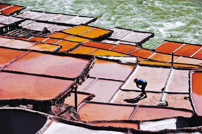 在鹽田的忙碌人民。