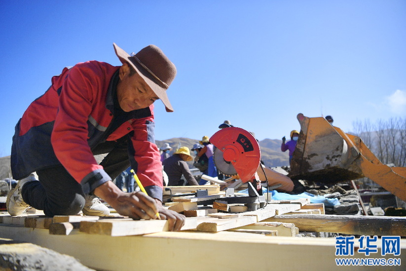 村民普布卓瑪家正在翻修舊房子。十幾個(gè)工人分工協(xié)作,分別承擔(dān)了切割木板、澆水泥、砌磚墻等工作,施工現(xiàn)場(chǎng)熱火朝天,井然有序。普布卓瑪說:“這幾年收入多了,生活好了,就想著把房子再翻修一下。”