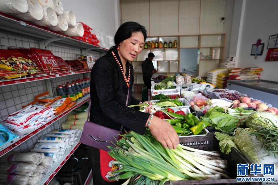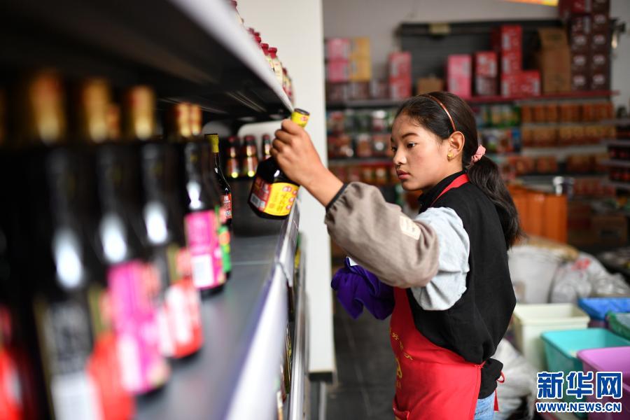 西藏昌都市丁青縣尺牘鎮(zhèn)烏巴村村民斯朗德吉在尺牘鎮(zhèn)的一家超市里打工(9月18日攝)。2018年,斯朗德吉和家人從烏巴村搬遷到尺牘鎮(zhèn)易地扶貧搬遷安置點(diǎn),住進(jìn)了寬敞明亮的新房子。斯朗德吉還就近在安置點(diǎn)附近的超市找到了工作,每個月有2000元的收入。新華社記者 詹彥 攝
