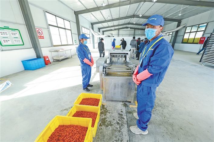 圖為日喀則市白朗縣萬(wàn)畝枸杞產(chǎn)業(yè)園里的工作人員在加工枸杞。記者 格桑吉美 攝