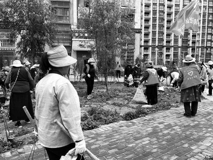 東嘎鎮(zhèn)祥和苑社區(qū)每周末以聯(lián)戶為單位,整治衛(wèi)生環(huán)境,摒棄“臟、亂、差”,營造良好的社區(qū)環(huán)境?!懊總€周末,我都會參加志愿服務活動,主要是清理社區(qū)公共區(qū)域,有時也會去清理河道,希望可以為社區(qū)建設出份力?!苯衲?2歲的老人卓瑪告訴記者。