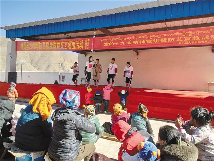 西熱組織大學(xué)生在基層開展防治艾滋病公益宣傳和文藝演出活動(dòng)。