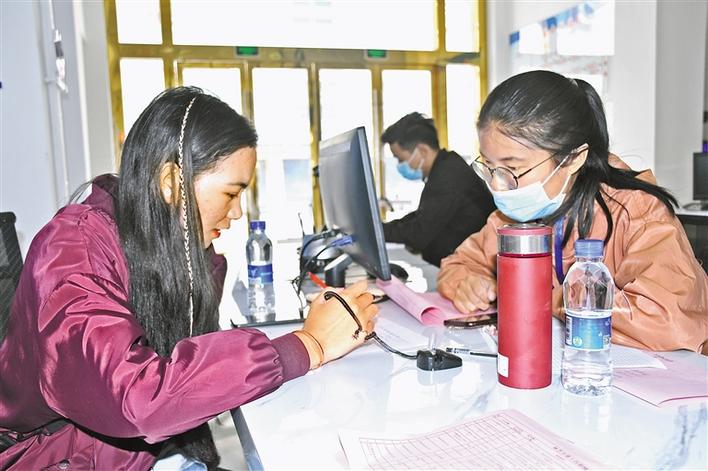 今年以來(lái),西藏林芝市積極采取各種措施促進(jìn)高校畢業(yè)生就業(yè),其中每周五舉行的周五精品招聘會(huì)更是深受廣大高校畢業(yè)生和求職者的青睞。 圖為求職者在向企業(yè)代表咨詢(xún)相關(guān)問(wèn)題。 記者 張猛 攝