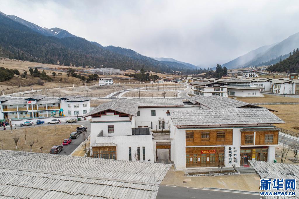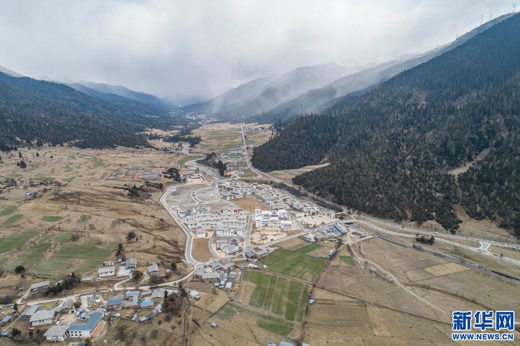 這是魯朗國(guó)際旅游小鎮(zhèn)一景(4月2日攝,無(wú)人機(jī)照片)。新華社記者 孫非 攝