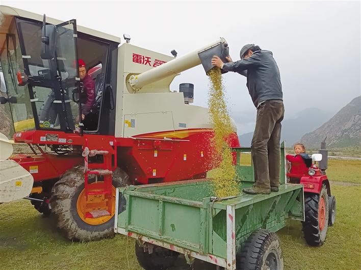 圖為邊壩縣群眾使用機(jī)器收割青稞。昌都市農(nóng)業(yè)農(nóng)村局提供