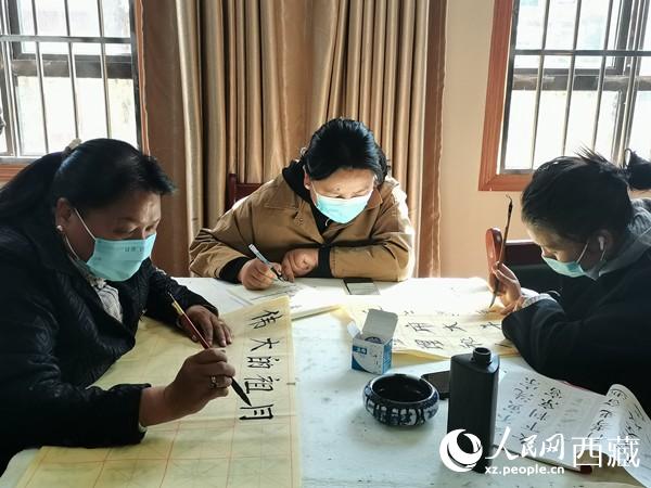“村里有好多人喜歡書法,恰好城關(guān)區(qū)開(kāi)展新時(shí)代文明實(shí)踐站·一村一特色文化品牌村(社區(qū))創(chuàng)建活動(dòng),我們就想著往這個(gè)方面打造一下。”蔡村第一書記土登洛桑介紹。如今,每逢周六,村里會(huì)邀請(qǐng)拉薩市文聯(lián)、拉薩市書法家協(xié)會(huì)的書法名家,為熱愛(ài)書法的村民們傳授技藝。