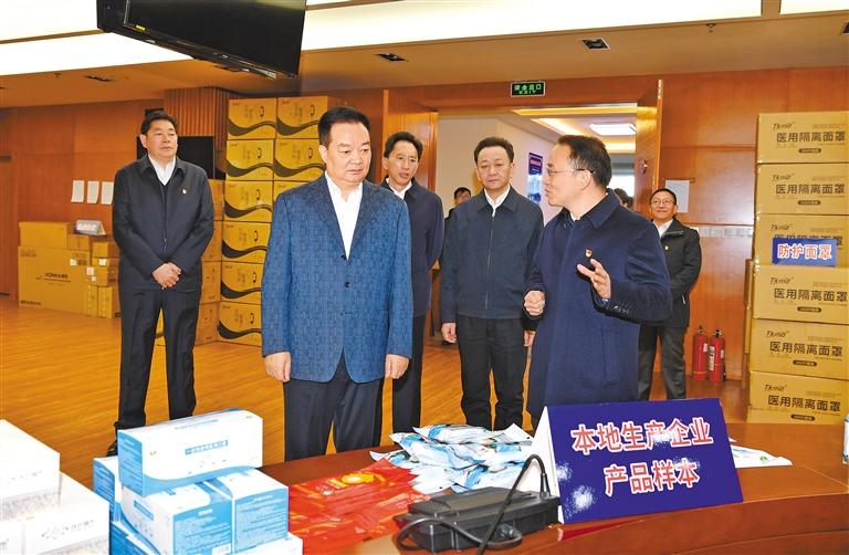 2月14日上午,西藏自治區(qū)黨委書記王君正在自治區(qū)經(jīng)濟和信息化廳調研。這是王君正來到防疫物資儲備庫,認真了解西藏應對新冠疫情物資保障情況。記者 旦增西旦 攝