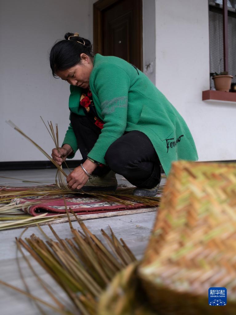 巴登村村民在家編織竹筐(4月15日攝)。新華社記者 晉美多吉 攝