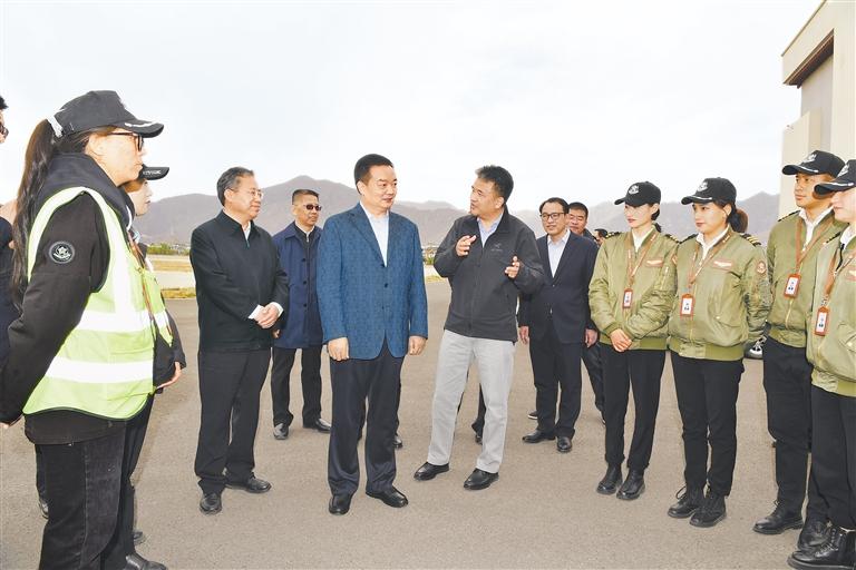 王君正強(qiáng)調(diào),基礎(chǔ)設(shè)施建設(shè)是人民群眾最關(guān)心、最現(xiàn)實(shí)的利益問(wèn)題,也是推動(dòng)高質(zhì)量發(fā)展、融入新發(fā)展格局的重要支撐。西藏基礎(chǔ)設(shè)施建設(shè)不僅要算經(jīng)濟(jì)賬,更要算民心賬、政治賬。要落實(shí)落細(xì)中央支持西藏發(fā)展的特殊優(yōu)惠政策,緊緊圍繞“十四五”規(guī)劃落實(shí),把國(guó)家支持西藏的各項(xiàng)舉措有效轉(zhuǎn)化為推動(dòng)長(zhǎng)治久安和高質(zhì)量發(fā)展的具體工作,以通用航空產(chǎn)業(yè)建設(shè)為突破口,著力解決交通瓶頸制約問(wèn)題,夯實(shí)長(zhǎng)治久安和高質(zhì)量發(fā)展基礎(chǔ)。要強(qiáng)化基礎(chǔ)設(shè)施建設(shè),突出工作重點(diǎn),加大工作力度,加快工程進(jìn)度,年年見(jiàn)成效,不斷提升基礎(chǔ)設(shè)施建設(shè)水平。要突出產(chǎn)業(yè)重點(diǎn),堅(jiān)持優(yōu)化一產(chǎn)、壯大二產(chǎn)、提升三產(chǎn),做大做強(qiáng)特色優(yōu)勢(shì)產(chǎn)業(yè),積極培育戰(zhàn)略性新興產(chǎn)業(yè),立足西藏特色優(yōu)質(zhì)資源稟賦和比較優(yōu)勢(shì),加快新興產(chǎn)業(yè)培育,大力發(fā)展通用航空產(chǎn)業(yè),以重點(diǎn)突破帶動(dòng)整體發(fā)展。
