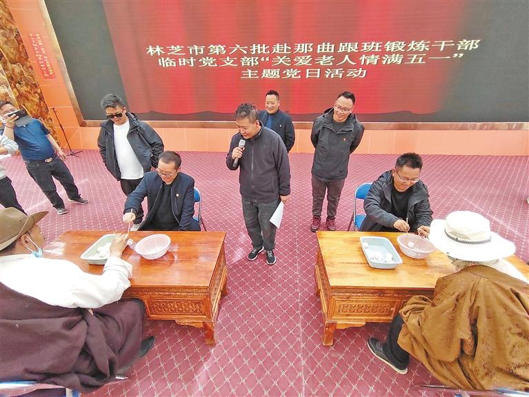 近日,林芝赴那曲跟班鍛煉小組臨時(shí)黨支部組織黨員干部前往色尼區(qū)特困人員集中供養(yǎng)中心開(kāi)展關(guān)愛(ài)老人主題黨日活動(dòng)?;顒?dòng)中,黨員干部為老人們發(fā)放慰問(wèn)品、表演文藝節(jié)目,同老人們拉家常,幫老人們打掃衛(wèi)生。此次活動(dòng)既是一次志愿活動(dòng),也是一次黨性鍛煉,充分展現(xiàn)了黨員干部踐行為民服務(wù)、奮發(fā)有為的時(shí)代風(fēng)采,增進(jìn)了干群關(guān)系。