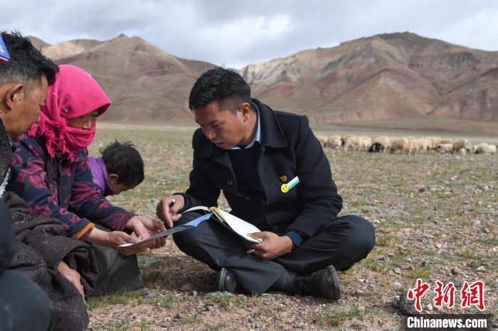 圖為農(nóng)行雙湖縣支行工作人員深入牧區(qū)開(kāi)展金融流動(dòng)服務(wù)。(資料圖) 貢嘎來(lái)松 攝