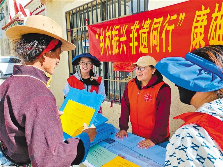 圖為仁布縣康雄鄉(xiāng)文化站的工作人員向群眾講解非遺知識(shí)。記者 汪純 攝