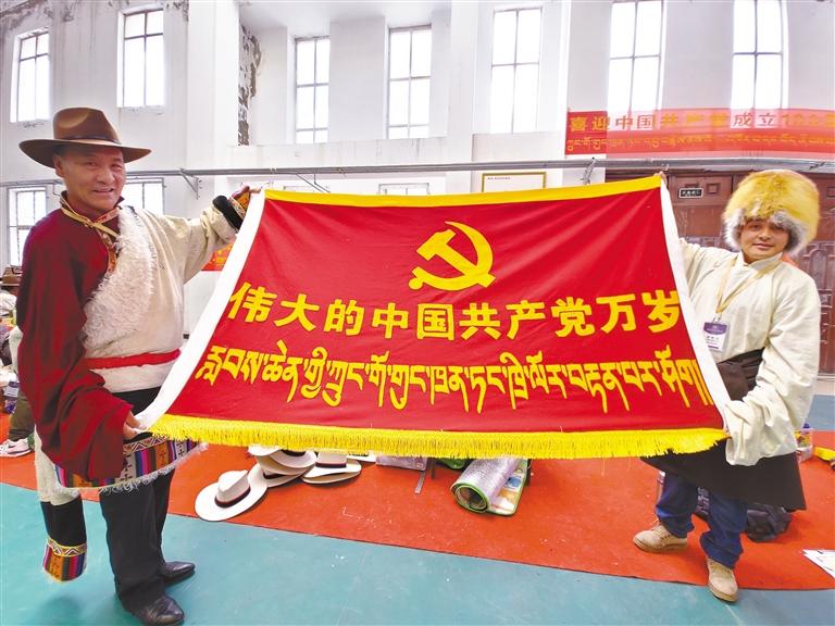 也有不少牧民,希望把藏北牧民愛黨愛國(guó)愛家鄉(xiāng)的熱情注入到傳統(tǒng)工藝當(dāng)中。在比賽現(xiàn)場(chǎng),記者看到很多牧民在傳統(tǒng)的氆氌和背包上刺繡、拼貼出黨徽、國(guó)旗、天安門等圖案,或繡出“偉大的中國(guó)共產(chǎn)黨萬歲”“鄉(xiāng)村振興那曲奮進(jìn)”等字樣。