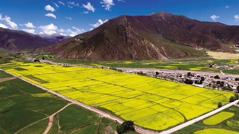 滿目金黃香萬里,三夏好景醉千山。時至七月,雪域高原上大片油菜花盛開。近年來,拉薩市墨竹工卡縣借助小油菜,全方位、多維度、立體化展示“三產融合”發(fā)展成果,展陳當?shù)靥厣幕偷赜蝻L情,推介旅游資源,吸引廣大農牧民參與到農、旅、文融合發(fā)展中來,吃上“旅游飯”,不斷鞏固拓展脫貧攻堅成果同鄉(xiāng)村振興有效銜接。