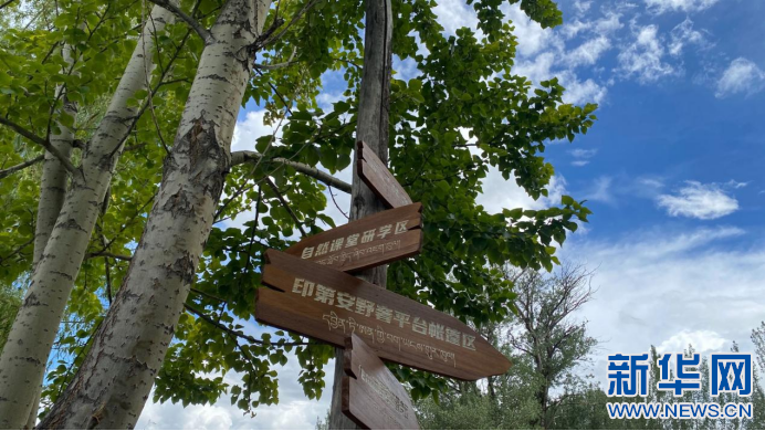 圖為薩己林野奢營地路標(8月2號攝)。新華網(wǎng)發(fā) 丹增卓嘎(實習生)攝。