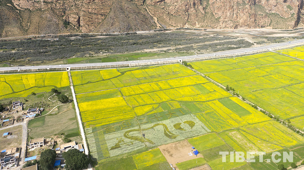 圖為西藏自治區(qū)拉薩市墨竹工卡縣扎西崗鄉(xiāng)油菜花田 攝影:王媛媛