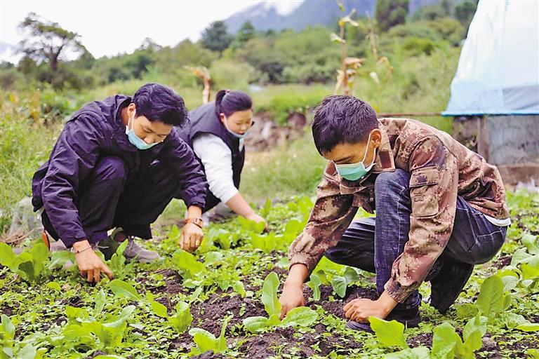 圖為察隅縣竹瓦根鎮(zhèn)扎拉村村民在照看菜地。通訊員 覃紅 記者 謝筱純 張猛 攝