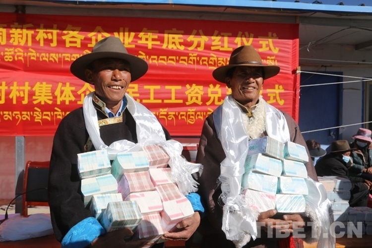 中國西藏網(wǎng)訊 2月2日,西藏自治區(qū)山南市乃東區(qū)結(jié)巴鄉(xiāng)滴新村2022年度集體經(jīng)濟分紅、集體企業(yè)民工工資兌現(xiàn)儀式在滴新村舉行。2022年,滴新村分紅資金為4581662元,比2021年增加726556元。