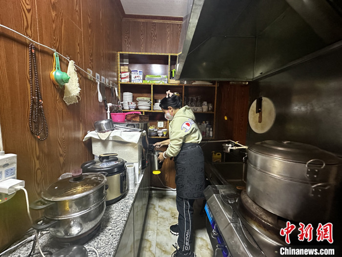資料圖為長江源村的一家藏餐吧內,店主李新財的妻子在忙碌。 中新社記者 李雋 攝