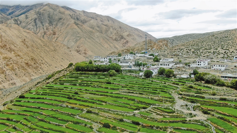 航拍普蘭縣普蘭鎮(zhèn)科迦村斜爾瓦組。 記者 洛桑旦增 攝