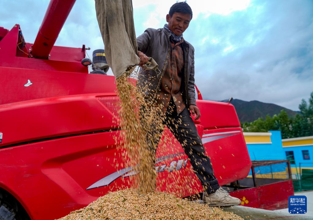 目前,西藏各地進入秋收時節(jié)。西藏山南市乃東區(qū)的農民在抓緊收獲作物。