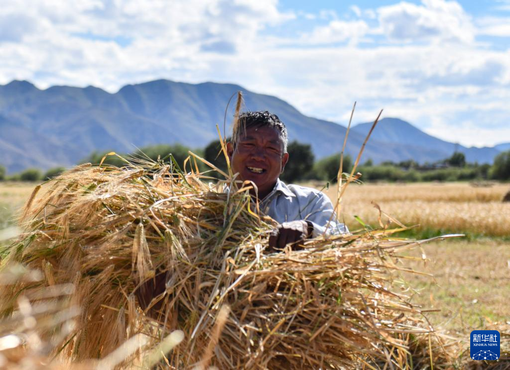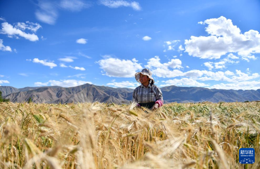 西藏日喀則市年楚河流域是西藏糧食的主產(chǎn)區(qū)之一,今年雨水豐沛,糧食長(zhǎng)勢(shì)喜人,大地鋪金,農(nóng)民喜迎豐收。